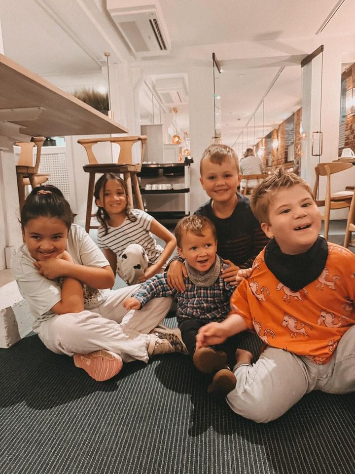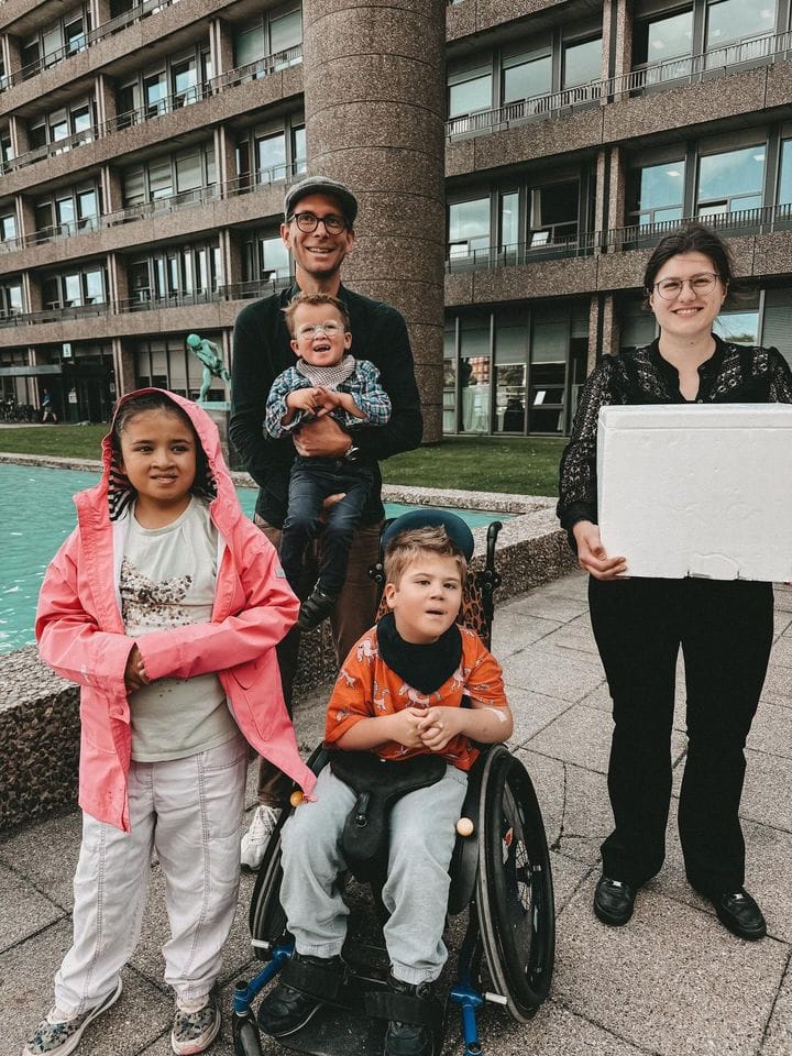NALCN Warriors Maya, Leo, and Henry with their siblings and researchers, Stephen and Nadine, in Copenhagen, Denmark